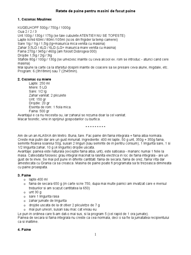Folosind o masina de facut paine, iti poti prepara cea mai delicioasa paine, dar si cozonac, aluat pentru gogosi, chec, panettone, blat de pizza sau focaccia. Ce poate fi mai sănătos decât pâinea cea de toate zilele, preparată în casă cu ingrediente alese. Din pacate nu va pot eu calcula asa ceva… va trebui sa adaptati reteta si sa vedeti daca cuva masinii permite sa se faca o astfel de paine! Retete masina de facut paine din toata lumea ! Si ce placere a fost sa ma intorc acasa si sa ma.