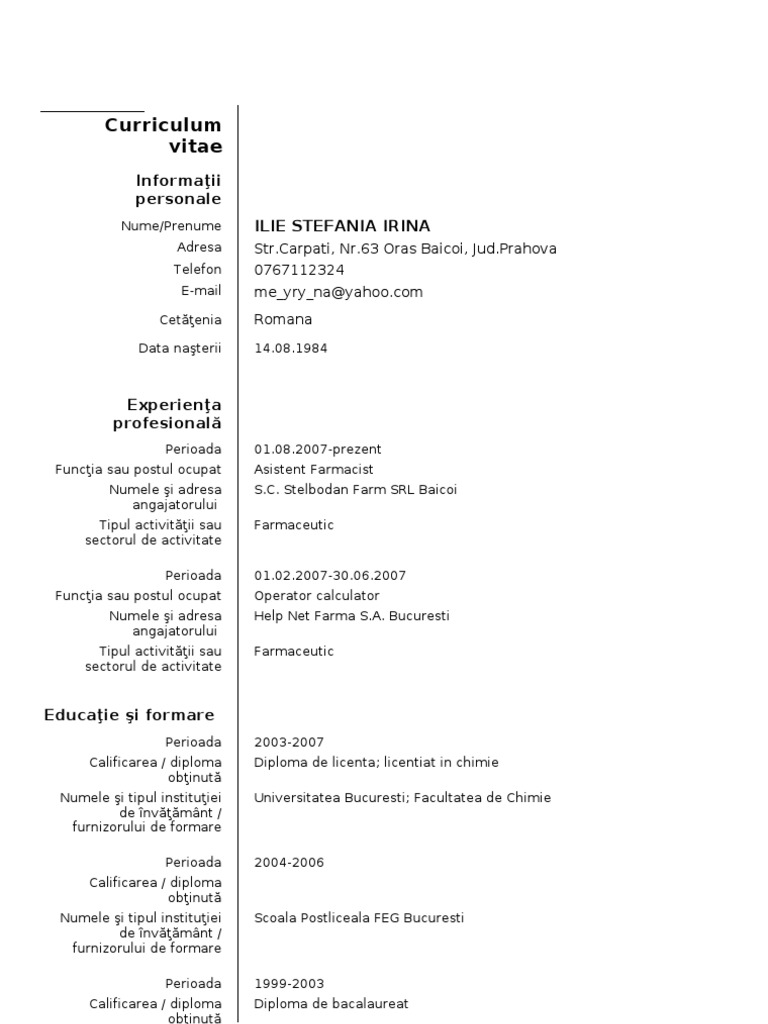 Este un model simplu pentru cei care nu au. Aptitudini cv si completat competente. Acolo unde nu există date se va completa cu „nu este cazul.